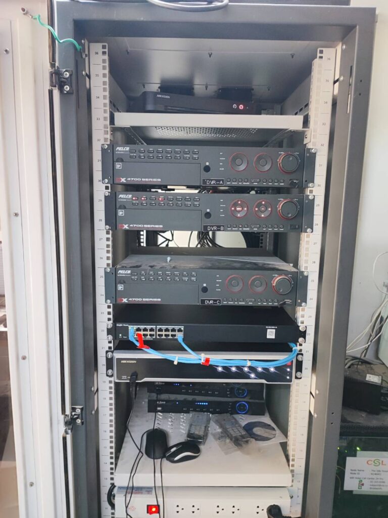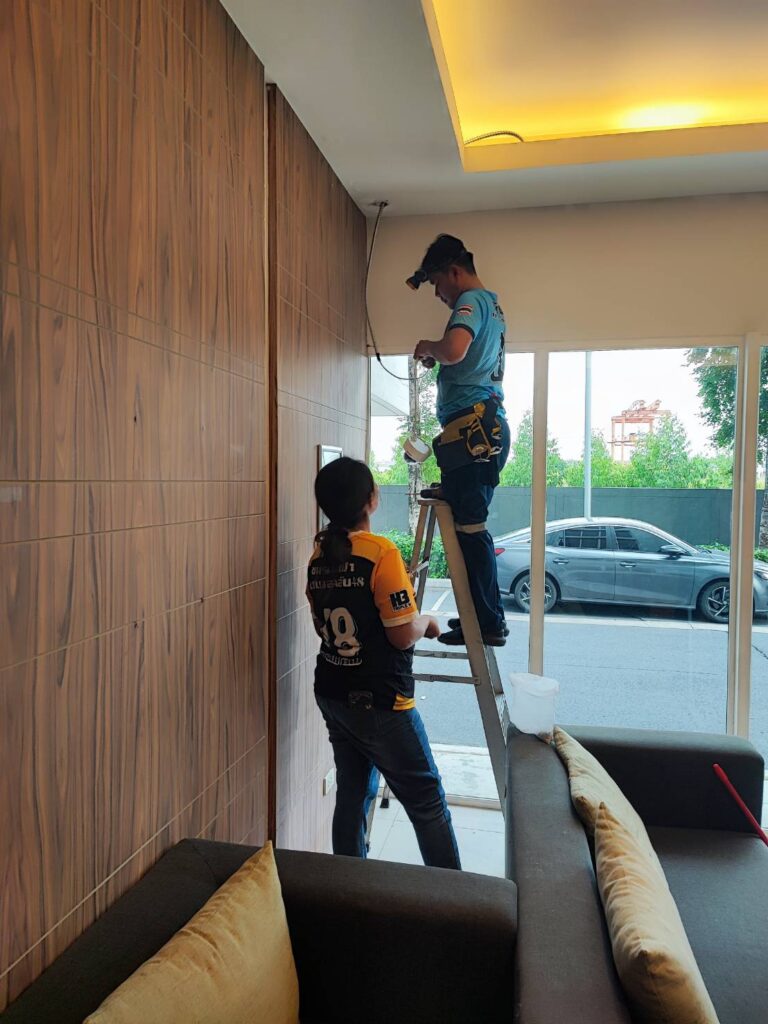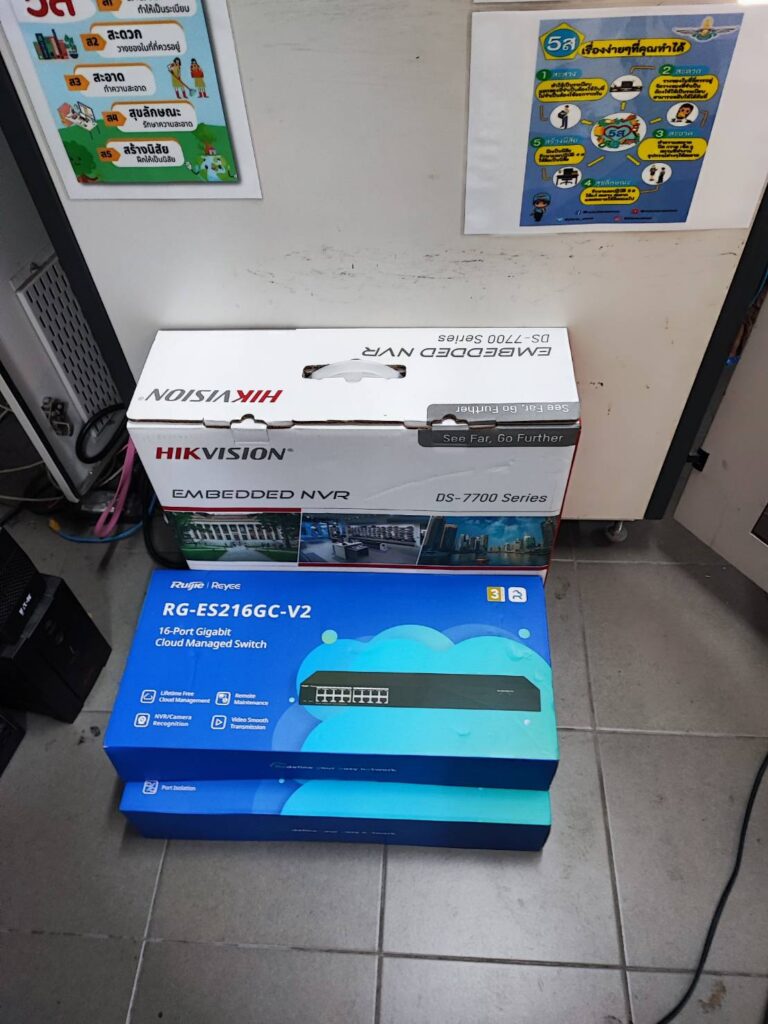 ติดต้ังระบบ CCTV (IP Camera) ทดแทนระบบกล้อง Analog เดินสายร้อยท่อ Flex เหล็กบนฝ้า/ท่อ PVC ขาว พร้อมติดต้ัง NVR (HDD)& PoE SW และกล้อง IP Camera 28 ตัว (รวมกล้องในลิฟท์ 2 จุด)